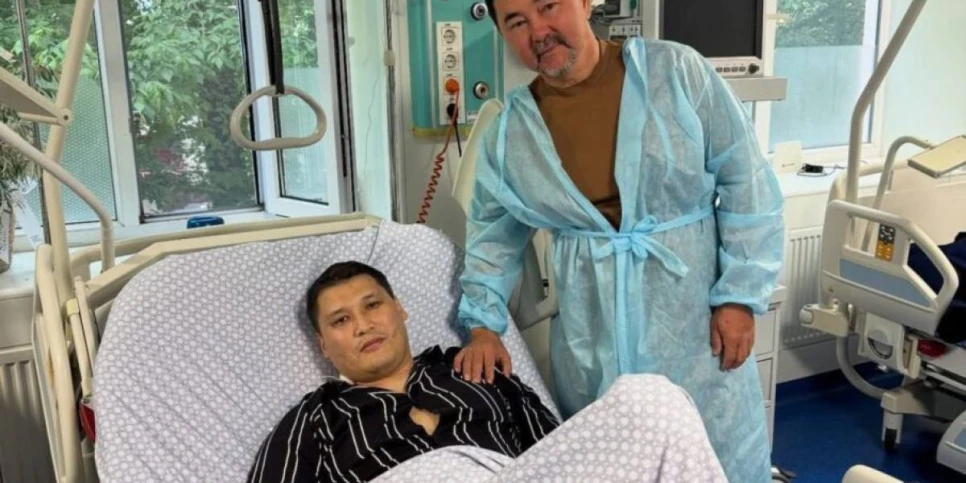 Палатадағы кереуетте жатқан Берденовпен белгілі кәсіпкер Марғұлан Сейсембаев суретке түскен.